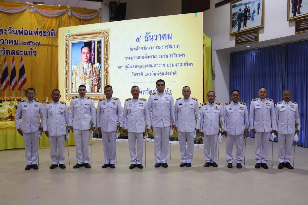 วันที่ 5 ธ.ค. 67 เวลา 07.00น. พล.ต.ต.ออมสิณ บุญญานุสนธิ์ ผบก.ภ.จว.สระแก้ว พร้อมด้วย ข้าราชการตำรวจ ภ.จว.สระแก้ว และข้าราชการตำรวจ สภ.เมืองสระแก้ว งานป้องกันปราบปราม ประกอบด้วย พ.ต.ต.ต่อเงิน วัฒนะกูล สว.(สอบสวน) ปฏิบัติหน้าที่ สวป.(ปพ.) สภ.เมืองสระแก้ว พร้อมข้าราชการตำรวจ 5 นาย ร่วมพิธีเจริญพระพุทธมนต์และพิธีวางพวงมาลา เนื่องในวันคล้ายวันพระบรมราชสมภพพระบาทสมเด็จพระบรมชนกาธิเบศร มหาภูมิพลอดุลยเดชมหาราช บรมนาถบพิตร วันชาติ และวันพ่อแห่งชาติ 5 ธ.ค.67 โดยมี นายปริญญา โพธิสัตย์ ผวจ.สระแก้ว เป็นประธานในพิธีฯ ณ หอประชุมปางสีดา ศาลากลางจังหวัดสระแก้ว